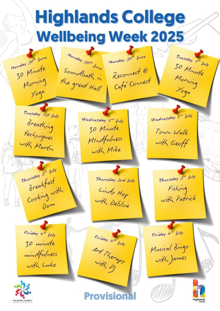 Here is the provisional list of events in the well-being week this year. Sign-ups will be sent in June.