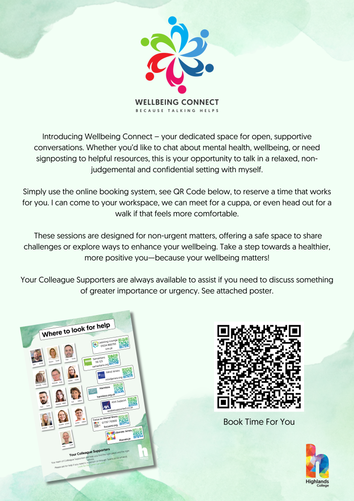Introducing Well-being Connect – a dedicated space for open, supportive, and confidential conversations about mental health and well-being.