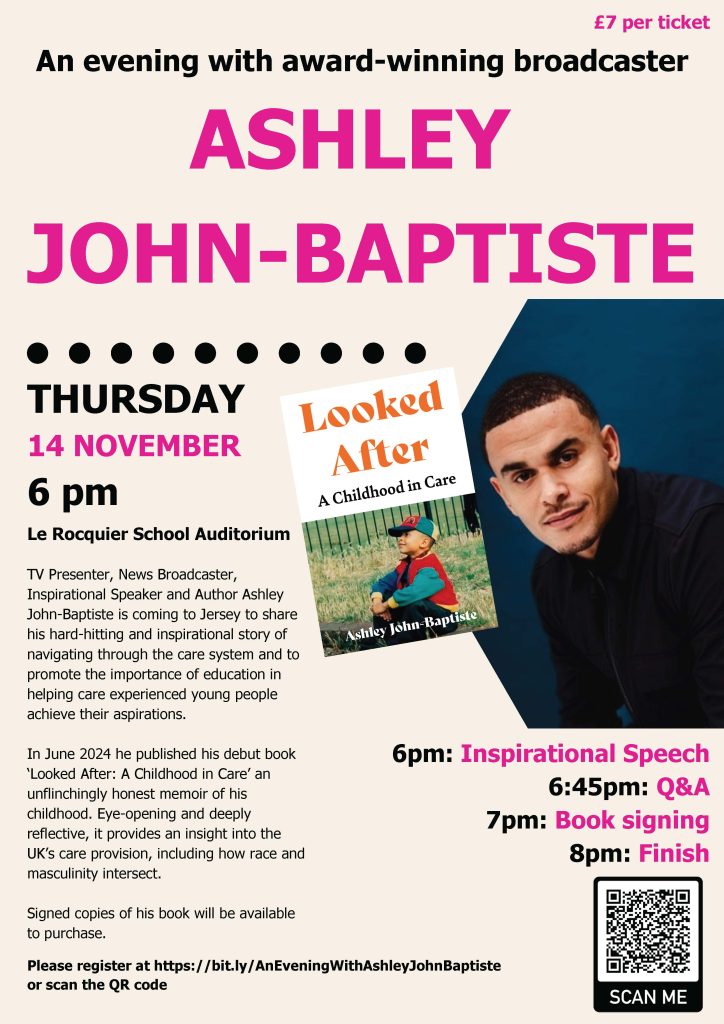 TV Presenter, News Broadcaster, Inspirational Speaker and Author Ashley John-Baptiste is coming to Jersey to share his hard-hitting and inspirational story of navigating through the care system and to promote the importance of education in helping care experienced young people achieve their aspirations.