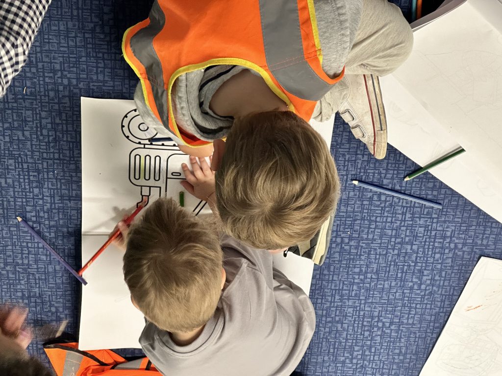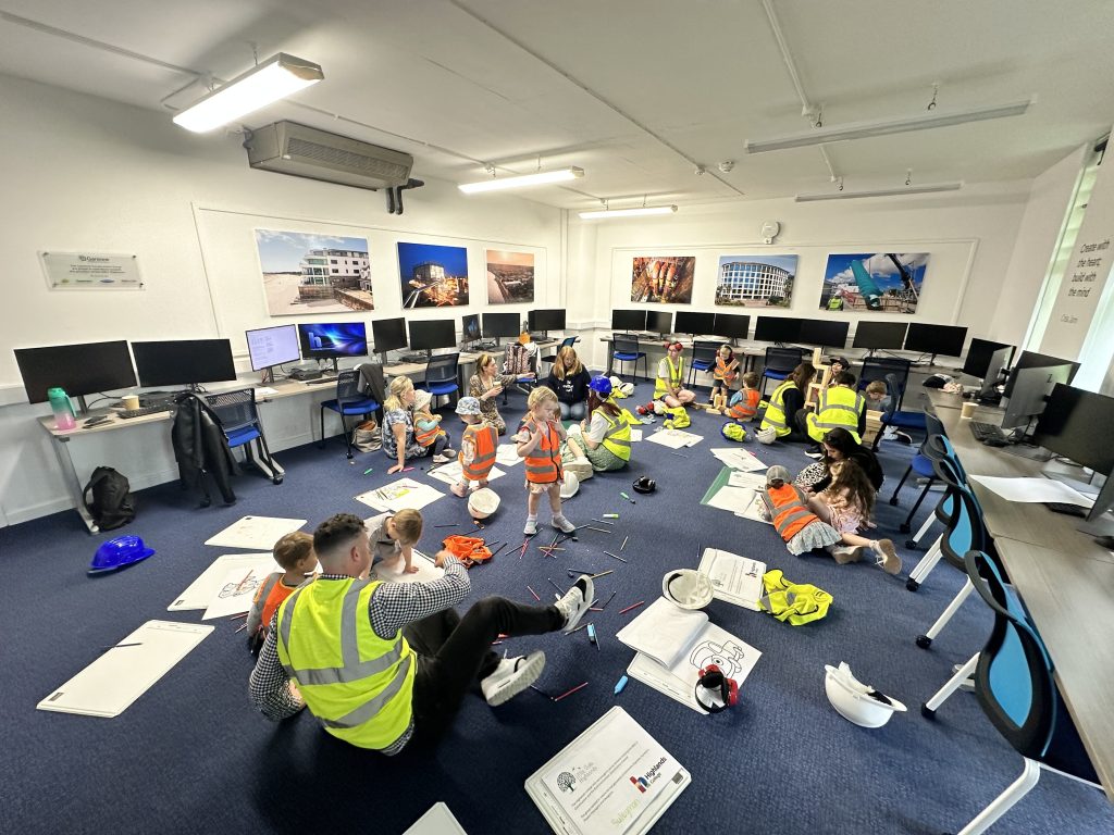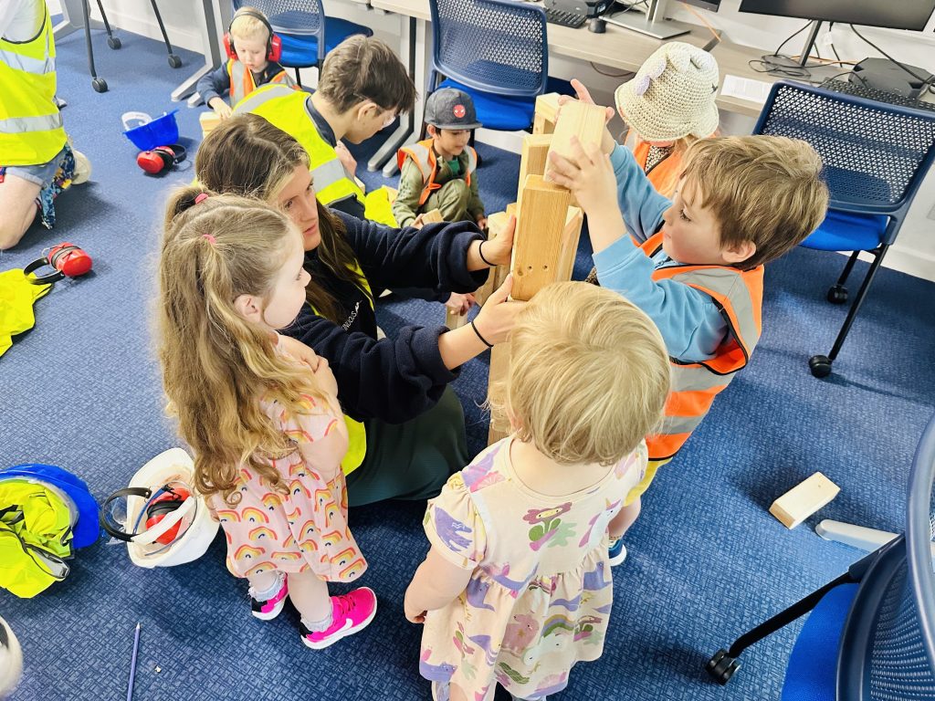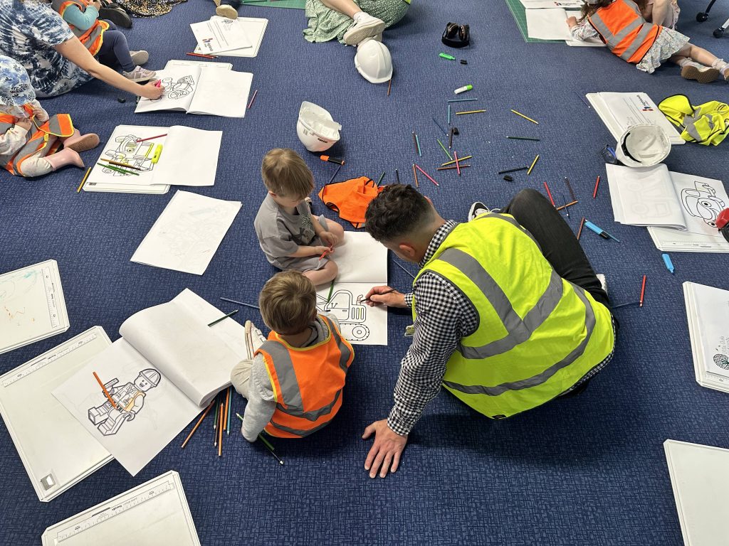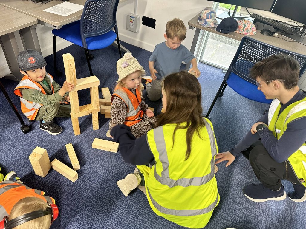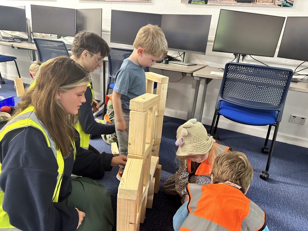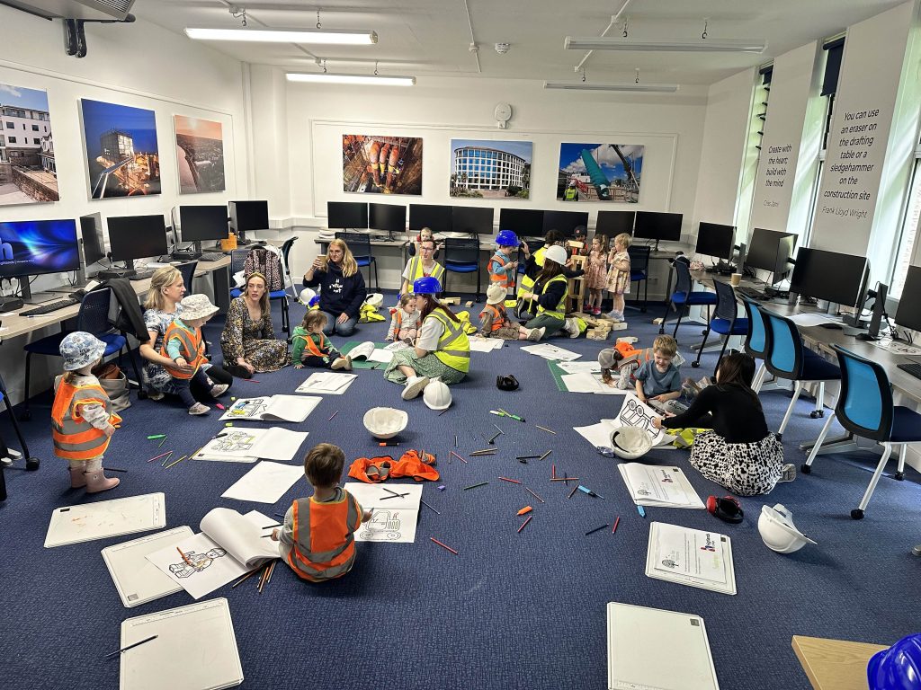 A group from Little Oaks Nursery visited the BTEC Design Engineer Construct classroom on Friday 24 May to take part in colouring in and some mini building activities.