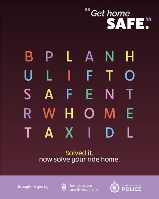 The States of Jersey Police and the Infrastructure and Environment Department are working in partnership to deliver the “Get Home Safe” campaign. The aim of the campaign is to encourage Islanders to plan their journeys home, make safe choices this festive season, and help reduce drink driving.