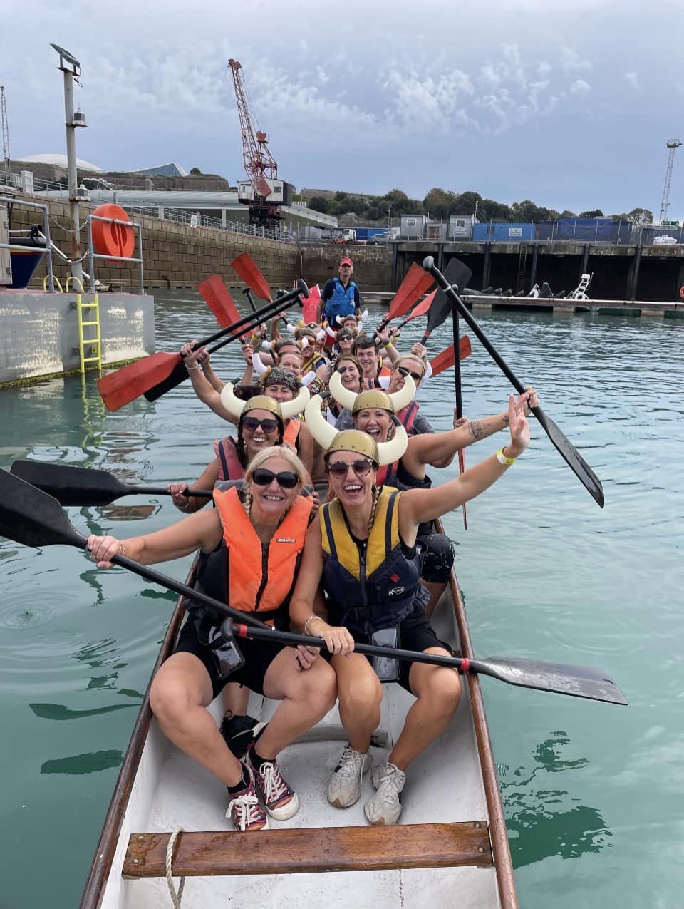 The Highlands College Hair and Beauty team, in collaboration with cross college staff members, embarked on an exciting adventure by forming a crew of 17 participants, expertly organised by their Hairdressing tutor, Lisa Lawless. This dynamic team, known as “The Viking Academy,” recently participated in the 25th Jersey Dragonboat Race, which took place on Saturday, September 16th, 2023.