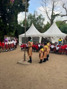 I started my week at the school assembly, 0715am with a rousing rendition of the Kenyan national anthem. The school has a Kenyan scout brigade with girls and boys who lead the procession for assembly. Next, three senior girls, aged 11 or 12, lead the school in singing and there’s also a prayer. The Muslim children have s separate celebration of faith with the Muslim teacher.