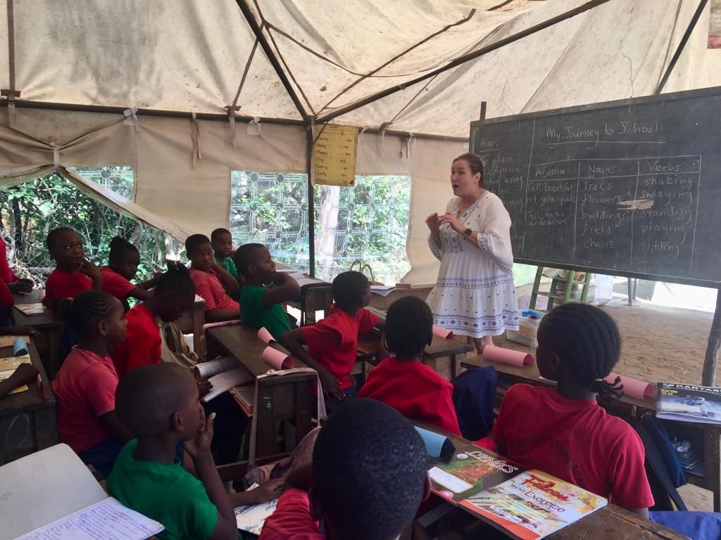 I have thoroughly enjoyed teaching again. I have a Grade 6 English class and we have been working on writing composition. The children are hungry to learn, there is much fun and laughter to be heard around the school grounds. Half the classes are in tents and half are in temporary classrooms made of corrugated iron (very hot).