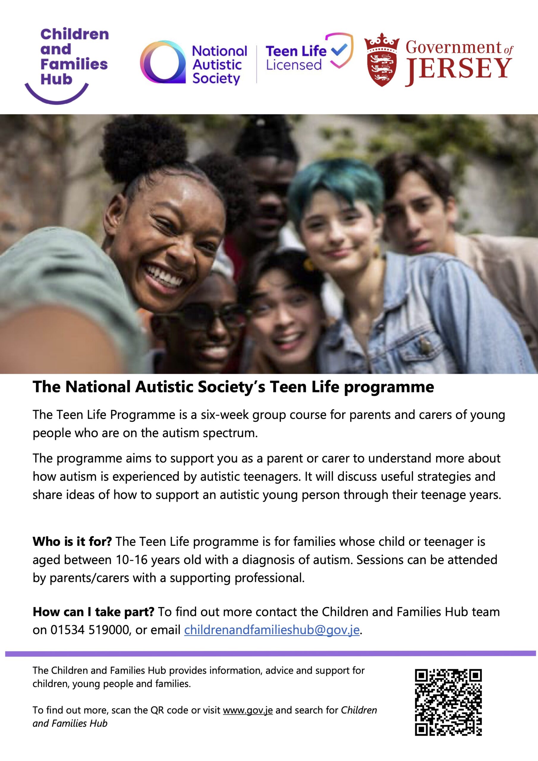 The new National Autistic Society Teen Life training will be available in the Summer and Autumn Term. This is suitable for families with children who have a diagnosis of autism and are in Year 6 upwards.
