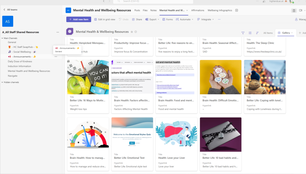 Mike has started to put a lot of the information we have gathered over the last year from posts, on to fact sheets. They can be found as attachments on Teams: Mental Health and Wellbeing Channel or by contacting Mike Watkins.