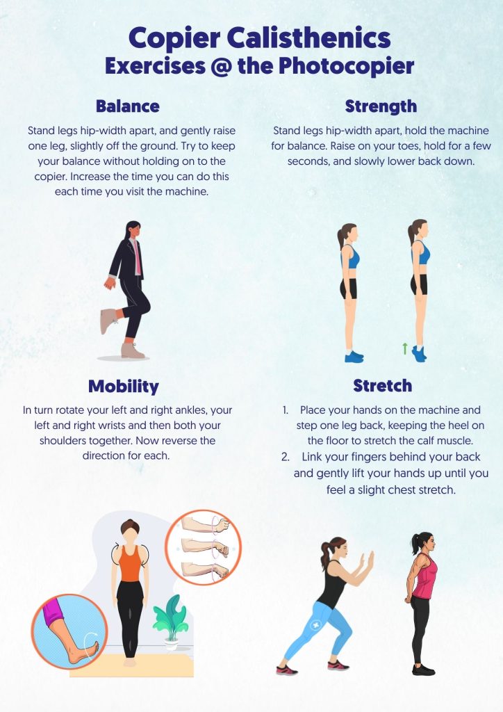 Explore the innovative concept of Copier Calisthenics, designed to enhance workplace productivity through targeted exercises tailored for office environments.