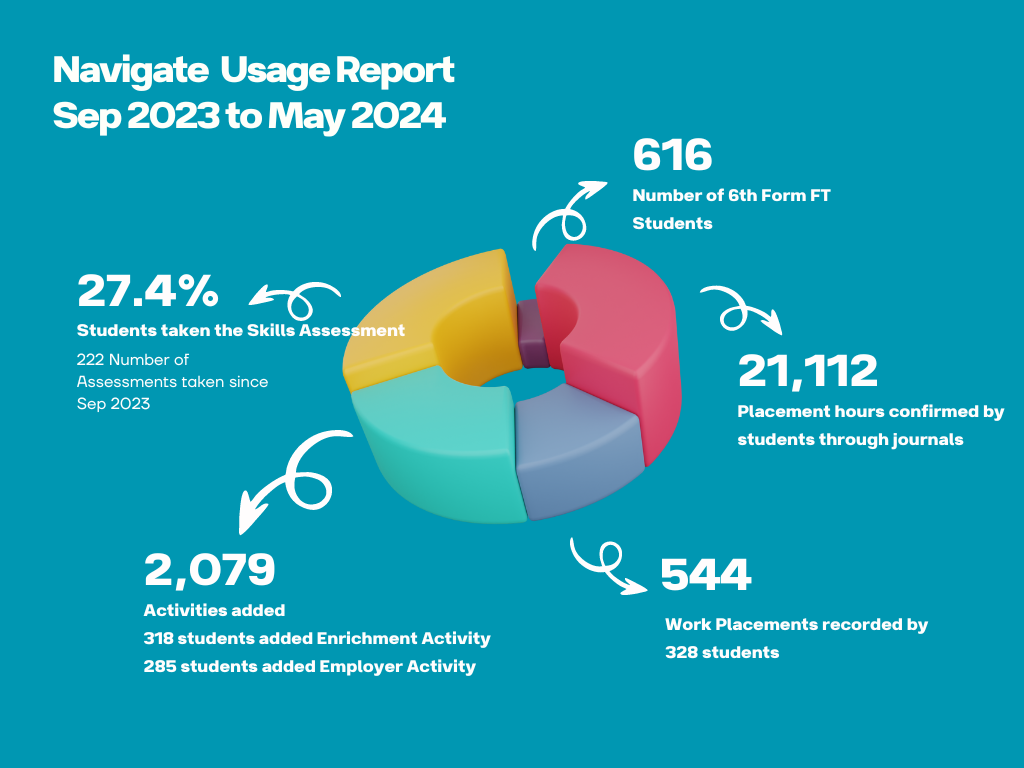 There has been a great increase in Navigate usage. Thank you to all staff that supported students to use Navigate and to those of you who have been great ambassadors and shared good practice. We would like to recognise this efforts and the Team with the highest usage reported from September to June 2024 will receive a £250 to use towards the end of term activities / treats.