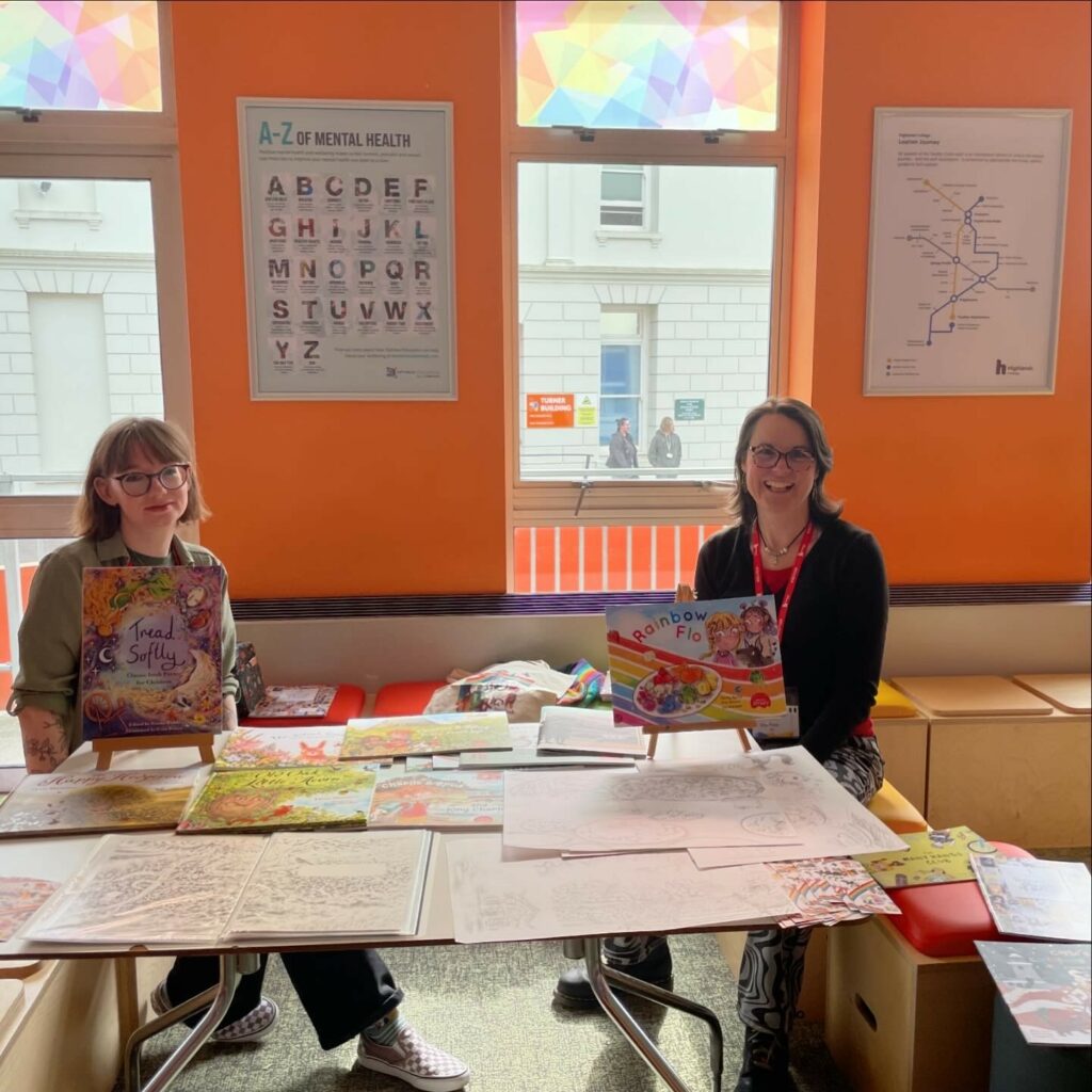 Finally, Penny Byrne (a Jersey author) and illustrator Erin Brown set up a colourful display in the student lounge and came to talk to students.