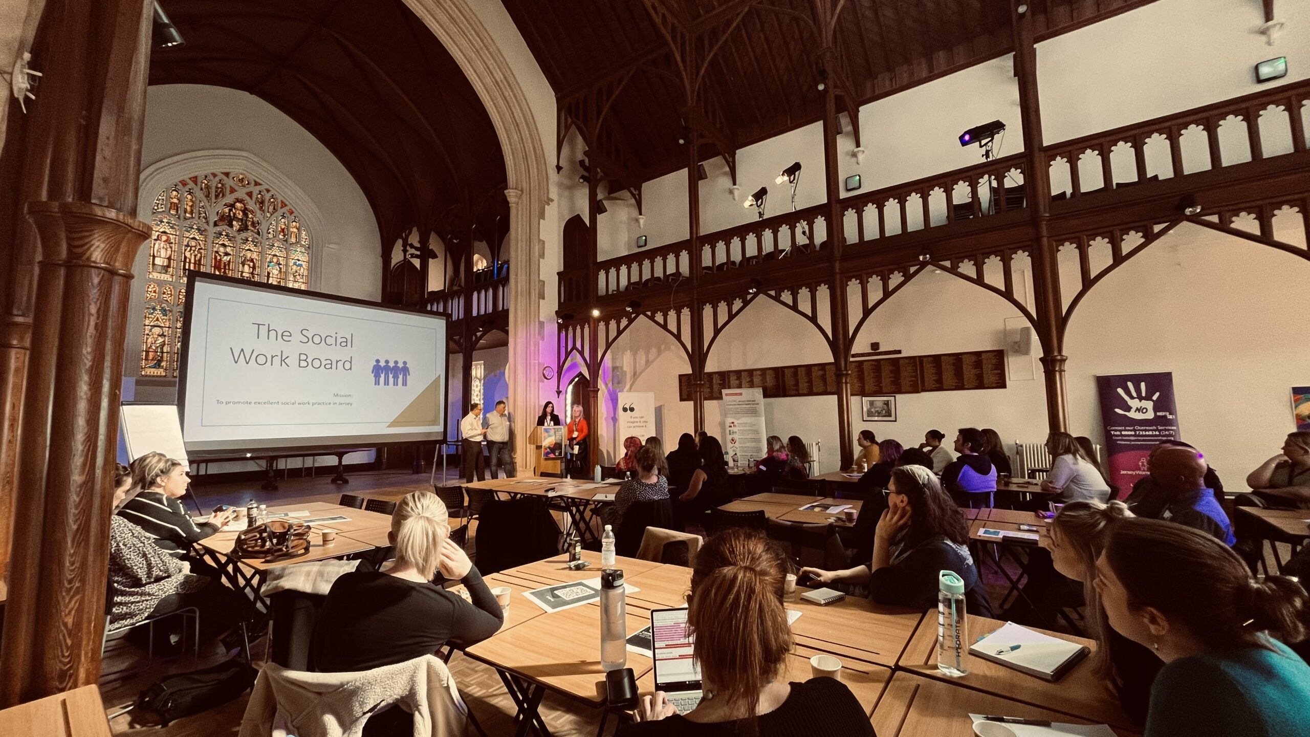 The event was well attended with representations from statutory services, as well as partner agencies in the community and third sector (including Jersey Women’s Refuge, Mind Jersey, Shelter, Dementia Jersey, and Jersey Cares). Students who are currently working towards gaining their social work degrees at University College Jersey (UCJ) were also in attendance.